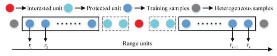 - Suppose the range unit for the cell under test is , calculate the geometric distances for all the training data in the range domain using Equation (13);