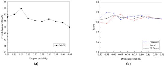 The dropout layer prevented the model from relying too much on some local features by randomly discarding the parameter values of some neurons. Thus, its inclusion could enhance the robustness of the model while avoiding the overfitting phenomenon. The effect of different dropout values on the model performance is shown in Figure 9. It can be seen that the classification accuracy performance was optimal when the dropout value was 0.6.