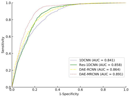To verify the effectiveness of each model using the DAE-MRCNN method, we conducted ablation experiments for the models. The one-dimensional convolutional neural network designed in this study was chosen as the benchmark. The sub-models were defined as follows: