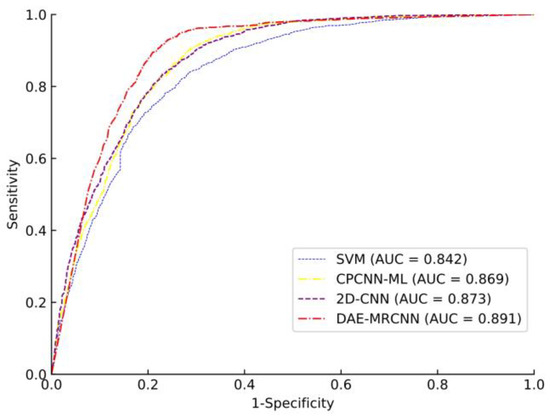 - The classification model consisting of the deep autoencoder network and the multi-scale deep residual network with convolution kernel sizes of 1, 3, and 5, added to the benchmark model, which was the classification method proposed in this study (DAE-MRCNN).