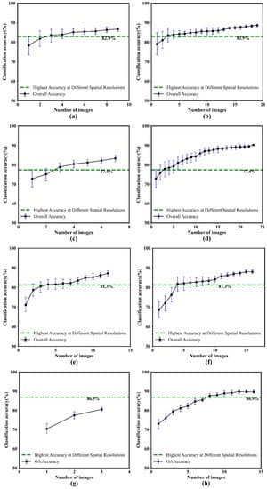 4.1. Classification Accuracies of Images at Various Spatial Resolutions