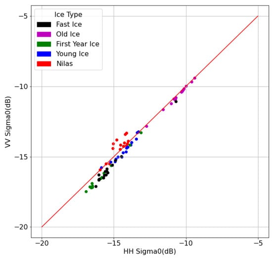 36], in 2007, used a threshold of –12 dB to segment MYI and FYI. Physical properties such as surface roughness, salinity, and thickness of multi-year and FYI change daily, resulting in variations in σ