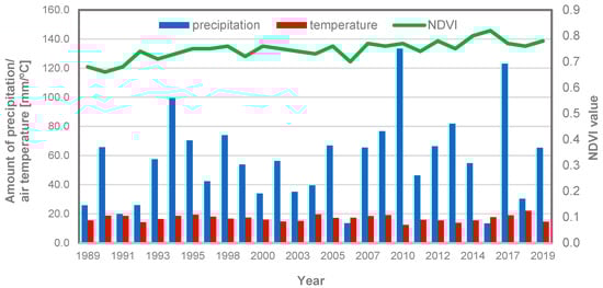 Meteorological conditions and average values of the NDVI index in the period of 1989–2019.
