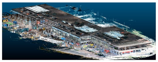 Considering the point cloud, it represents the most complex dataset to manage and simplify to be loaded and visualized in the WebGL context due to the huge number of points that compose the entire survey of the building (Figure 5). It was necessary to apply noise reduction algorithms [45] using Cloud Compare open-source software to decimate the dimension of the cloud and, simultaneously, guarantee a realistic visualization on web browsing. In particular, two LoDs of point cloud were developed: a general Point Cloud Building Model (gPCBM) that includes the overall visualization of the ITCnb, and a detailed Point Cloud Building Model (dPCBM) of every floor of the building.