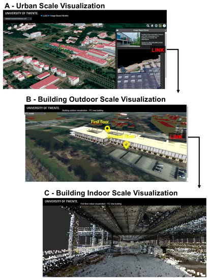 Therefore, this research proposes a solution based on WebGIS open-source platform visualizing urban datasets in a multiscale mode. We integrated heterogeneous datasets (point clouds, IFC model, 3D meshes, 2.5D and 2D geospatial models) in a geospatial environment. The case study is the new building of the ITC Faculty of Geoinformation—University of Twente, located in Enschede (the Netherlands), and its surrounding area. The next section will show the research carried out in this field, then the methods and datasets used for the development of the platform will be described, and, in the end, the results and new open scenarios will be explained, followed by conclusions and discussion.