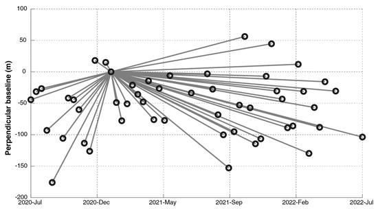 We collected 51 Sentinel-1 SAR images acquired from July 2020 to July 2022 by ascending orbit in terrain observation by progressive scans (TOPS) mode in Weihe Basin (Figure 4). The resolutions are 5 m in the range and 20 m in the azimuth directions. The look angle is approximately 34°. The ALOS World 3D (AW3D) digital surface model (DSM) [33] was used to remove the topographic phase and geocode.