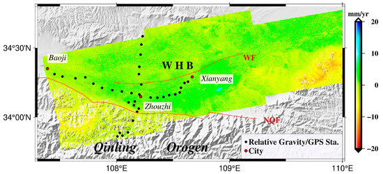 - Sentinel-1 SAR image and the persistent scatterer InSAR data processing method are used to obtain the displacement rate of the Weihe Basin. The results show that the vertical deformation of the Weihe Basin is dominated by uplift, and the subsidence areas are mostly located at the Qinling Orogen.