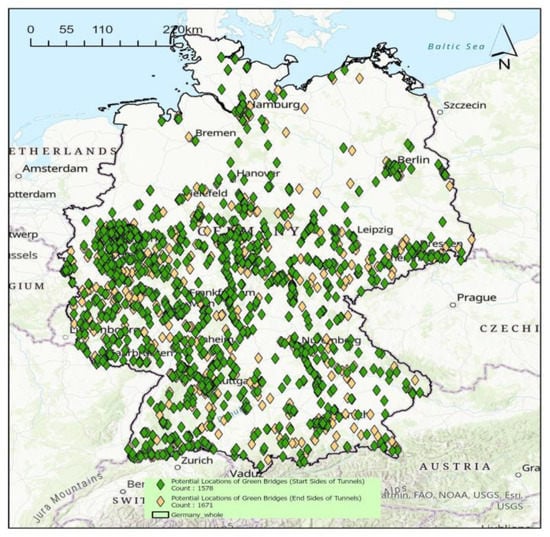 - Which locations can be geometrically feasible locations of green bridges considering the geometry and elevation of road networks of cities in Germany?