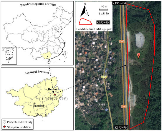 The Shangtan landslide is an old landslide located in Zhaoping county, Guangxi province, China (Figure 1), that occurred in 2007 due to the effects of heavy rainfall.