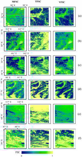 Equation (6) is used to calculate MFSC. The estimated results can be regarded as FSC calculated by the MODIS empirical model, which can be compared with other models [25].