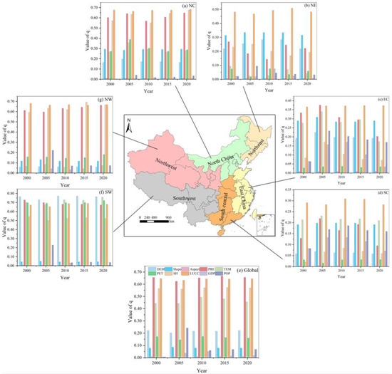 Changes in the q values of influential factors in China during 2000–2020.