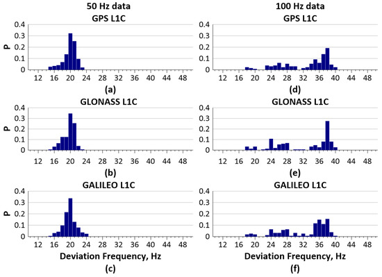 Figure 3 shows histograms of fd distribution depending on the data sample rate. Please note that only the results for the civil L1 signal (L1C) are shown in this figure for the economy of space. Exact analysis depending on the GNSS signals is provided in the next section.