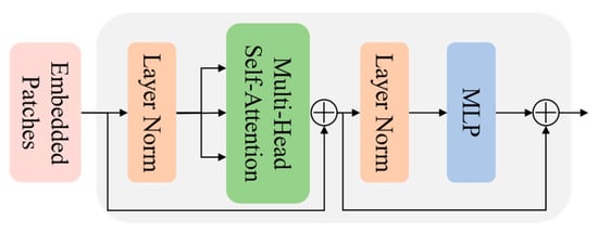 As shown in Figure 3, an HTB is made up of layers of MSA and MLP blocks [31] that alternate. Layer norm (LN) [54] is used in front of every block, and in the rear, residual connection is utilized. Two FC layers that are activated by a Gaussian error linear unit (GELU) form the MLP blocks. As a result, the HTB output can be calculated as follows: