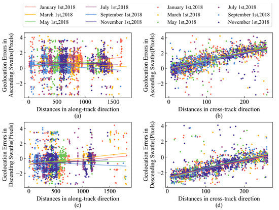 3.1. Evaluation of Geolocation Accuracy before and after Geolocation Correction