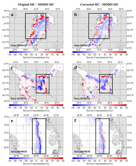 3.3. Comparisons of Accuracy of Sea Ice Concentration Retrieved from MWRI Images before and after Geolocation Correction