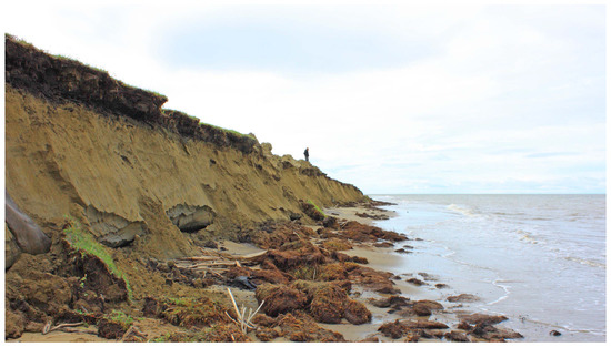 - Günther, F.; Overduin, P.P.; Sandakov, A.V.; Grosse, G.; Grigoriev, M.N. Short-and long-term thermo-erosion of ice-rich permafrost coasts in the Laptev Sea region. Biogeosciences 2013, 10, 4297–4318. [Google Scholar] [CrossRef]