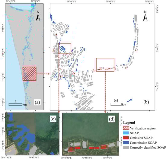 - The proposed method could extract SOAPs with high accuracy. The relative error of the total areas between labeled SOAPs and extracted SOAPs was 1.13%, and the omission errors of labeled SOAPs were 3.46% in number and 1.95% in area, revealing that our method could effectively map aquaculture ponds.