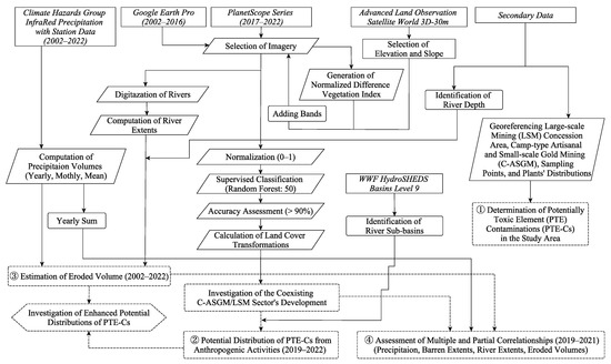APA StyleKimijima, S., Nagai, M., & Sakakibara, M. (2023). Distribution of Enhanced Potentially Toxic Element Contaminations Due to Natural and Coexisting Gold Mining Activities Using Planet Smallsat Constellations. Remote Sensing, 15(3), 861. https://doi.org/10.3390/rs15030861