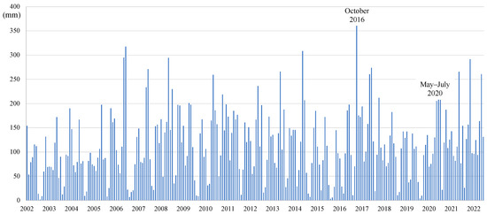 3.4. Changes in Precipitation Amount and Disasters That Occurred in the Study Area