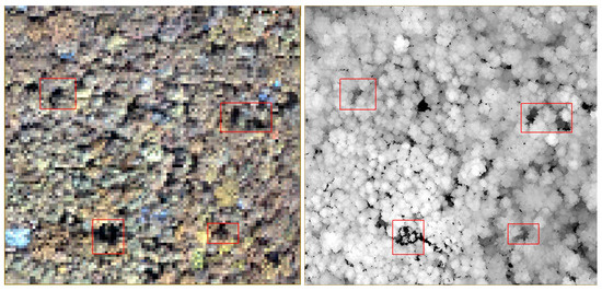 Aligned raster images based on forest gaps. The red rectangles represent the corresponding forest gaps.