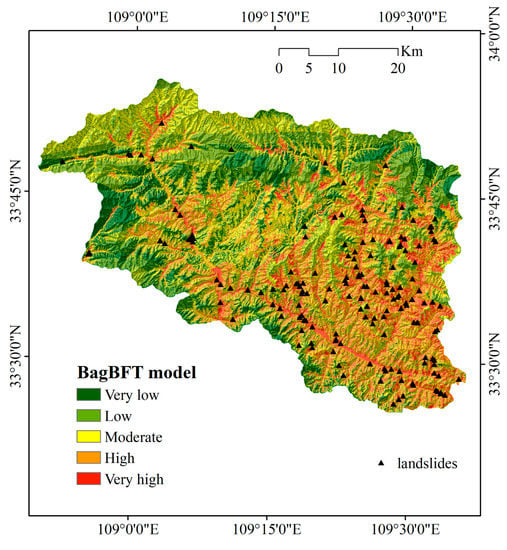 Landslide susceptibility map using the BagBFT model.