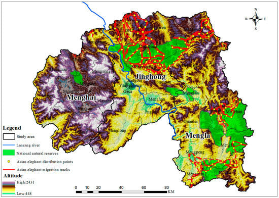 - Lin, L.; Jin, Y.; Chen, D.; Guo, X.; Luo, A.; Zhao, J.; Wang, Q.; Zhang, L. Population and habitat evaluation of Asian elephant in Menglazi Protected Area of Xishuangbanna National Nature Reserve. Acta Ecol. Sin. 2014, 34, 1725–1735. [Google Scholar] [CrossRef]