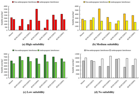 4.3. Prediction of Suitable Habitat for Asian Elephants in Sipsongpanna under Future Conditions