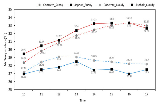 | Time | Concrete | Asphalt | Concrete | Asphalt | Concrete | Asphalt | Concrete | Asphalt |