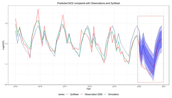 This study first employed time series models to analyze the long-term trends and seasonal effects on NO2 emissions, so as to further determine the extent to which the changes are due to the COVID-19 policy measures. Specifically, using ground-based observation data for the five years before the pandemic, a time series X11 decomposition model was used to detect the change trend and periodic impact characteristics of the long-term series, and a multiple linear regression model was used to build a time series prediction model. Together, this allows the estimation of the NO2 emission curve under “business as usual” conditions, that is, the expected line for 2020 without the intervention of the COVID-19 restriction policies. The time-series analysis and modelling were completed using R.