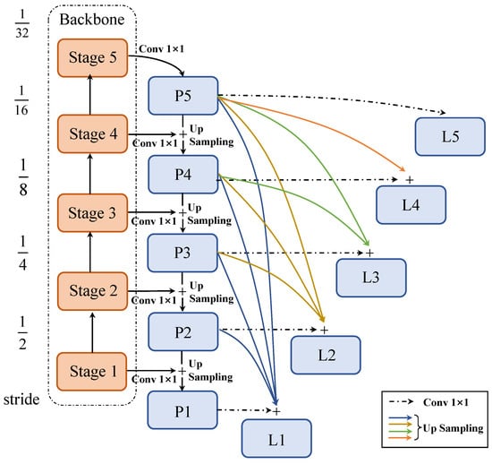- Lin, T.Y.; Dollár, P.; Girshick, R.; He, K.; Hariharan, B.; Belongie, S. Feature pyramid networks for object detection. In Proceedings of the IEEE Conference on Computer Vision and Pattern Recognition, Honolulu, HI, USA, 21–26 July 2017; pp. 2117–2125. [Google Scholar]