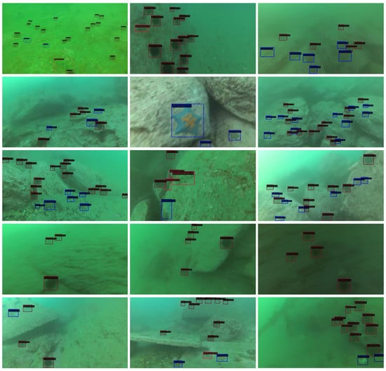 We test our model on the URPC2018 dataset. Figure 14 shows some detection results. It can be seen that objects in the images are small and clustered together, which makes them more difficult to detect. Our model can handle both small and large size objects. Moreover, for feeble objects in the image with a very low SNR, our model can still detect them.