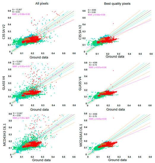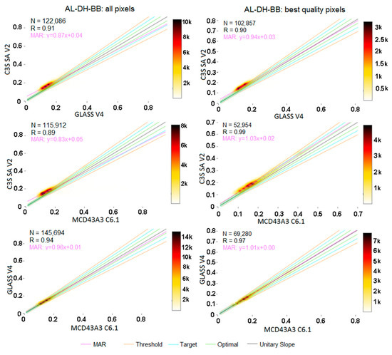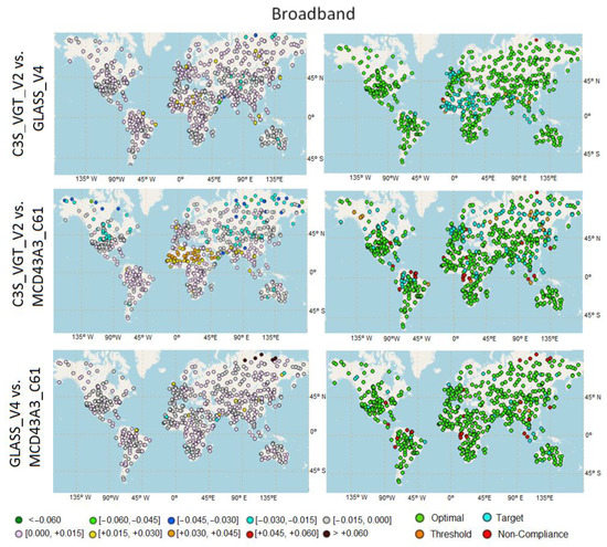 | C3S V2 vs. GLASS V4 | C3S V2 vs. MCD43A3 C6.1 | GLASS V4 vs. MCD43A3 C6.1 | |