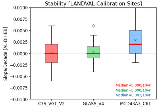 | Stability | Stability | Slope of the 10-year linear regression over desert calibration sites |