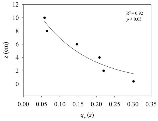 where qr(z) is the relative blown-sand flux, representing the proportion of the flux at height z divided by the total flux, qTrap(z) is the measured blown-sand flux at height z (cm), and Q (kg m−2 s−1) is the total blown-sand flux, which is the sum of the measured flux within 10 cm of the ground surface.