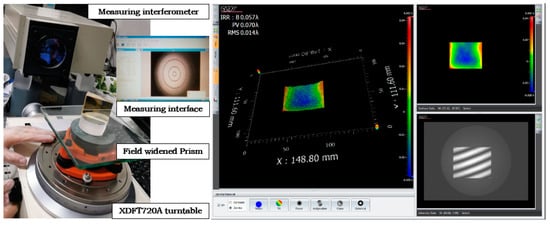 Compared to the air spacing thickness deviation Δ d , the thickness deviation of the field-widened optical wedge prisms is Δ d / n , where n is the refractive index of the field-widened prisms. Figure 7 shows the model diagram of the integrated glued interferometer assembly. The optical prisms and spacers with certain angles are glued together by optical glue, which can crack under the influence of external forces. Consequently, in order to enhance the spatial environmental adaptability of the integrated interferometer assembly, we used epoxy structural glue to bond glass cover plates of the same material on both the top and bottom of the interferometer assembly to prevent the loosening of the interferometer component due to stress changes in environmental conditions.