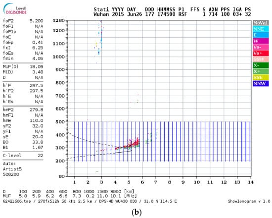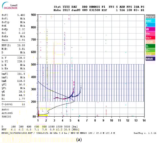 - Jiang, C.; Yang, G.; Zhou, Y.; Zhu, P.; Lan, T.; Zhao, Z.; Zhang, Y. Software for scaling and analysis of vertical incidence ionograms-ionoScaler. Adv. Space Res. 2017, 59, 968–979. [Google Scholar] [CrossRef]