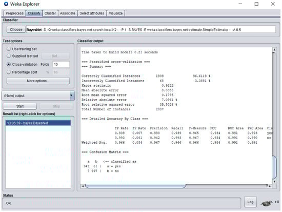 The naive Bayes classifier is an efficient and effective machine learning algorithm based on Bayes’ theorem and class conditional independence []. Bayes’ theorem is described as: