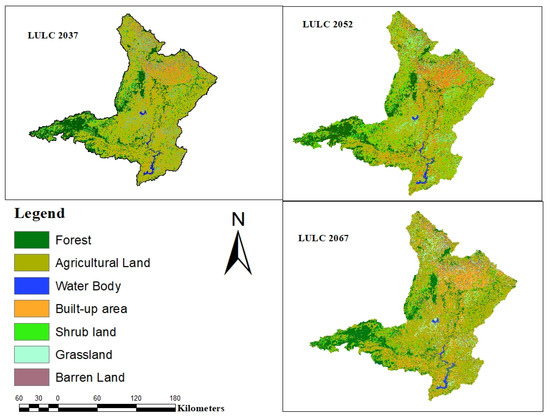 Area in km2 for the LULC (2037, 2052, and 2067).