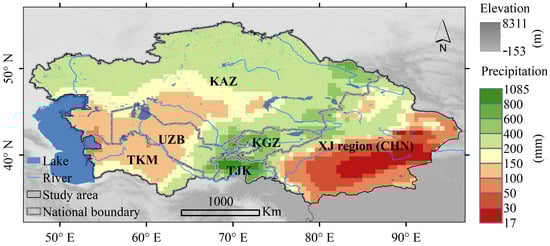 Basic geographic and precipitation information of the arid Central Asia.
