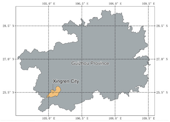The benchmark dataset in this paper was the barley remote sensing dataset (Barley dataset) derived from the UAV remote sensing images of a barley cultivation site in Xingren City, Guizhou Province, provided by “2019 County Agricultural brain AI challenge” on the Alibaba Cloud Tianchi Platform [45]. Xingren City is located between 104°54–105°34E and 25°18–25°47N, in Qianxinan Buyei and Miao Autonomous Prefectures, Guizhou Province (as shown in Figure 3). The climate of Xingren City is suitable for the growth of corn, flue-cured tobacco, barley, and other crops.