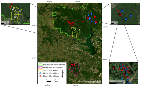 Lawrence, B.; de Lemmus, E.; Cho, H. UAS-Based Real-Time Detection of Red-Cockaded Woodpecker Cavities in Heterogeneous Landscapes Using YOLO Object Detection Algorithms. Remote Sens. 2023, 15, 883. https://doi.org/10.3390/rs15040883