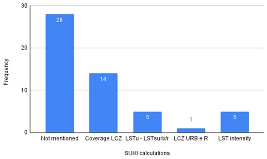 Therefore, all SUHI calculation methods found in the articles reviewed were cataloged and shown in Figure 9.