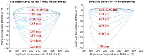 Figure 4 shows the solution of the plotted in arch curves. For both MW-MMW and TIR curves, we return the associated effective radius. For MW-MMW we show the effective radius interval that goes from 0.28 to 2.00 mm. Instead, for TIR measurements, we show the effective radius interval from 1.50 to 10.00 μm.
