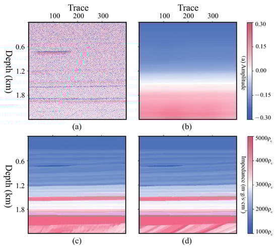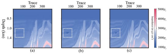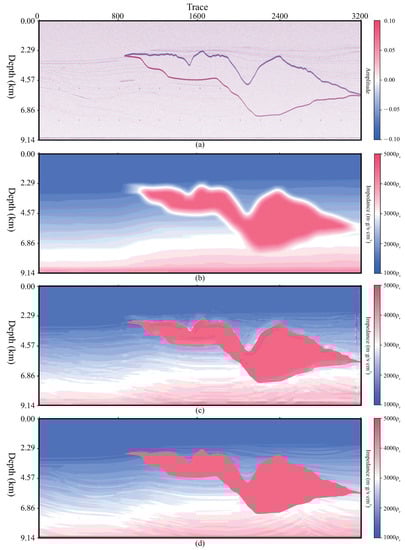 Yet, there are many issues that need to be further investigated in their workflows. For example, some prior knowledge (e.g., type, phase and frequency of wavelet, relatively accurate background impedance profile) is needed for deconvolution and regularization [,]. For 1D methods, spatial discontinuity is prone to downgrading the predicted results. Especially for conventional methods, they are not as robust in noisy cases as neural network methods and are more sensitive to hypo-parameters. In fact, many neural networks with full connection layers are hardly useful in field cases since the shape of the input is fixed. They cannot directly output a large seismic impedance profile after processing.