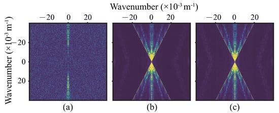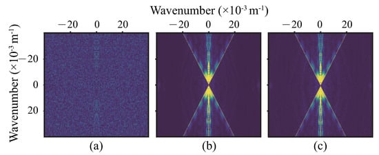 Combining Figure 8c,d and Figure 10c,d, the method in this paper can predict accurate impedance with blurred seismic profile and background impedance. The edges and faults in subfigure (c) are smoother than subfigure (d) because of optimization. From wavenumber spectrums, Figure 10a and Figure 11a, the input data are band-limited and contaminated by noise. The spectrums of the predicted profiles, Figure 10b and Figure 11b, are much clearer than the input and close to the spectrums of the labels. It validates that our method can predict impedance rationally and broadens the wavenumber band.