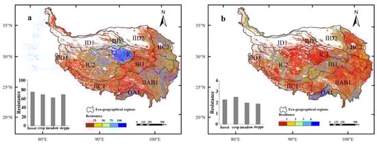 Vector boundary data of the QTP were obtained from the Institute of Geographic Sciences and Natural Resources Research, Chinese Academy of Sciences. The vector data of QTP ecogeographical regionalization were derived from the Ecological Geographical Regions Map of China (http://www.resdc.cn/, accessed on 28 November 2020), which is primarily based on the actual variations of surface natural properties. Combinations of temperature and humidity conditions and zonal vegetation and soil types can lead to a better understand the basic natural conditions of the surface of the plateau []. The land cover map of the QTP was extracted from the 1:1,000,000 digitalized vegetation map of China (Editorial Board of Vegetation Map of China, 2001, https://www.resdc.cn, accessed on 28 November 2020).