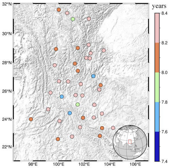 - Zhan, W.; Li, F.; Hao, W.; Yan, J. Regional characteristics and influencing factors of seasonal vertical crustal motions in Yunnan, China. Geophys. J. Int. 2017, 210, 1295–1304. [Google Scholar] [CrossRef]