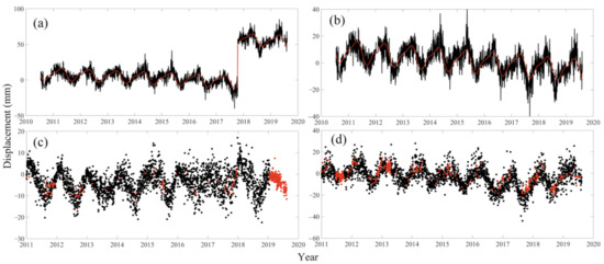 - Shen, Y.; Li, W.; Xu, G.; Li, B. Spatiotemporal filtering of regional GNSS network’s position time series with missing data using principle component analysis. J. Geod. 2014, 88, 1–12. [Google Scholar] [CrossRef]
