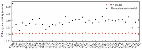 - Wu, S.; Nie, G.; Liu, J.; Xue, C.; Wang, J.; Li, H.; Peng, F. Analysis of deterministic and stochastic models of GPS stations in the crustal movement observation network of China. Adv. Space Res. 2019, 64, 335–351. [Google Scholar] [CrossRef]