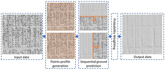 We noticed that in the GF problem, the bare terrain is a two-dimensional manifold embedded into 3D space. In this case, the ground points located on the terrain surface share similar geometric structures in a local range, and the classification results of the adjacent points are highly correlated, which indicates that the ground points can be retrieved gradually in a sequential manner. Based on this observation, we formulate the GF problem into a sequential prediction task using points-profiles, retrieving the ground points in each points-profile iteratively. In summary, we propose a novel GF pipeline named sequential ground prediction (SeqGP), which can acquire high spatial resolution and large contextual information simultaneously. The main contributions of this paper are as follows: